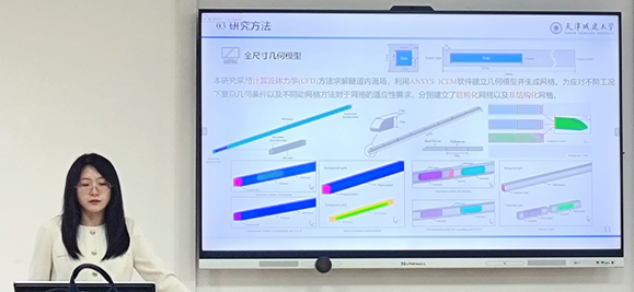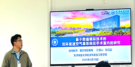 研究生乔梦巧、马子航、靳天昊、张苡宣分别在“建筑能耗评估与需求响应”、“建筑热光声模拟与供热空调控制”、“人行为与热舒适模拟”、“室内外空气流动与环境模拟”分论坛作了题为《实训类建筑能耗预测中数据特征选择适用性研究》、《夏热冬冷地区户用辐射供暖空调系统性能与调控策略研究》、《基于TRNSYS的装配式辐射地板空调系统运行优化研究》、《基于数值模拟技术的双环差速空气幕系统在手术室内的研究》的专题报告。