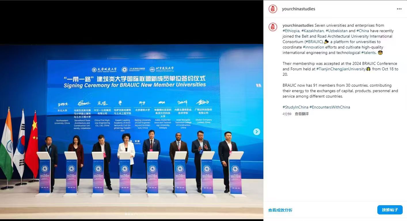 10月18日-20日,“一带一路”建筑类大学国际联盟2024年会议暨论坛在我校隆重召开。来自12个国家的20余位大学校长和企业家、40余所高校与机构的百余名联盟成员代表,围绕“共‘筑’盛世之路 同绘繁华之卷”主题,共商“一带一路”联盟发展蓝图,共建“一带一路”建筑教育共同体,共同为拓展高水平特色发展平台,构建全方位国际化人才培养体系,打造高质量发展新高地建言献策。会议受到了人民日报、新华社、光明日报、中国日报、中国新闻网、中国青年报、中国教育新闻网、天津日报、津云、天津教育报等多家媒体宣传报道。